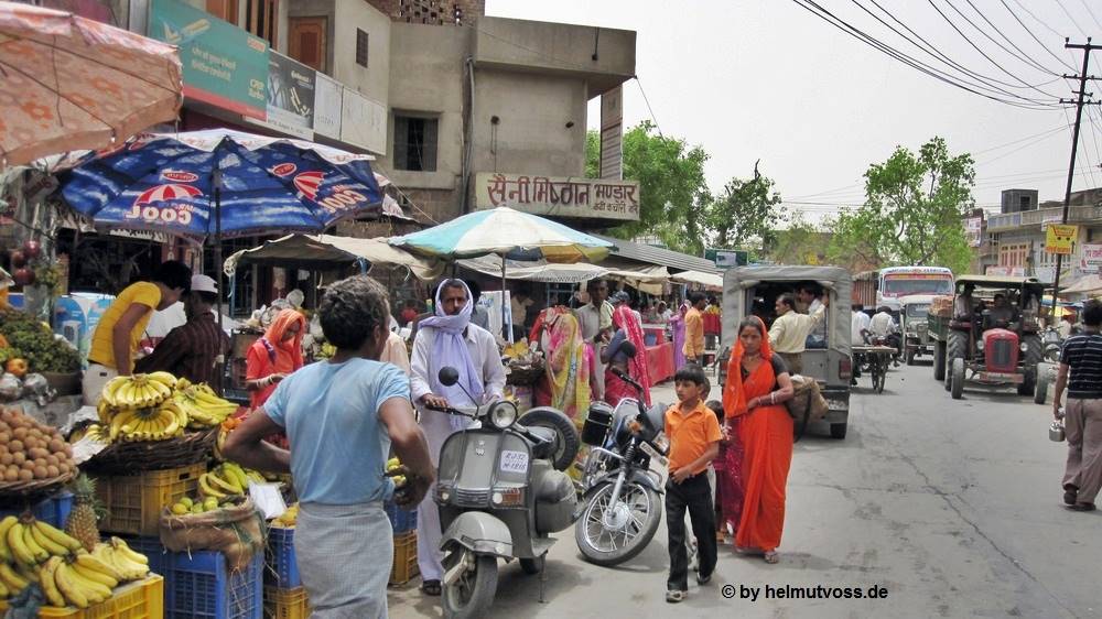 Im Zentrum der Thana Ghazi fand das Geschäftsleben statt. An vielen Ständen an der Straße wurde Obst, Gemüse, Zigaretten verkauft, Altagsleben in Indien eine bunte vielfalt.