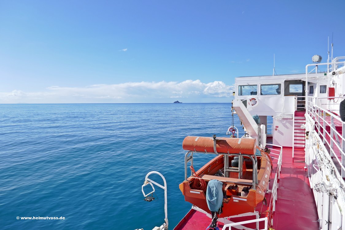 Wenn den Hafen von Piombino hinter sich gelassen hat, sieht man zunächst in der Ferne die Insel Cerboli und dann die Insel Palmaiola,