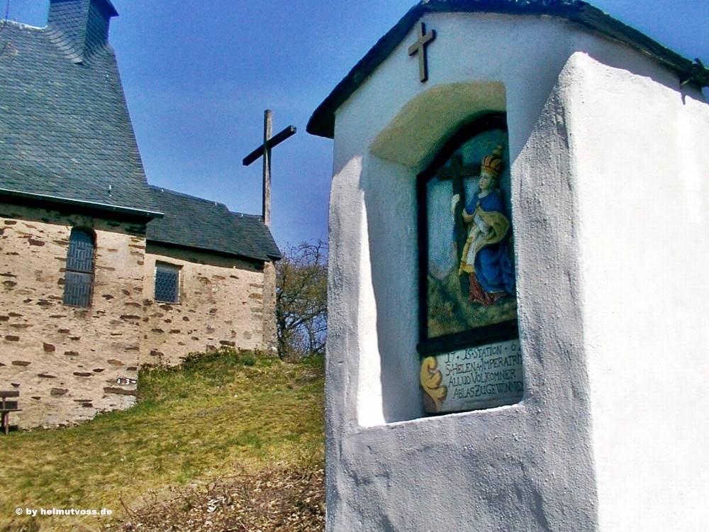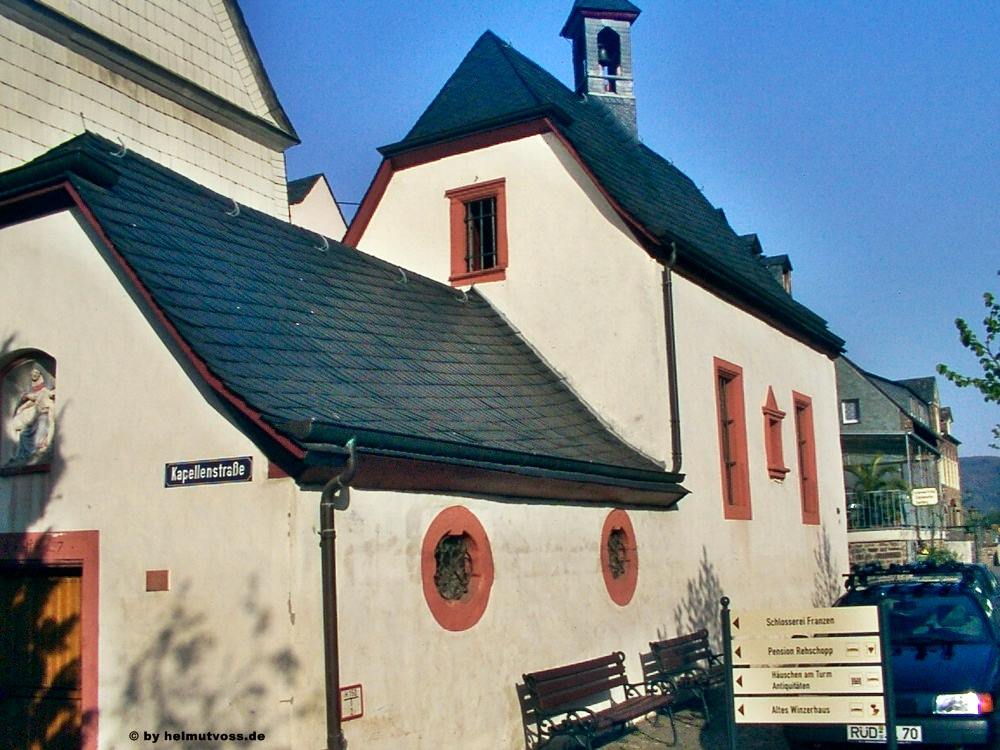 Zurück am Moselufer, die Meinraduskapelle. Im Inneren dieser Nachbildung der Gnadenkapelle von Maria Einsiedeln aus dem 17.Jh, kann man wunderschöne barocke Plastiken bestaunen. |