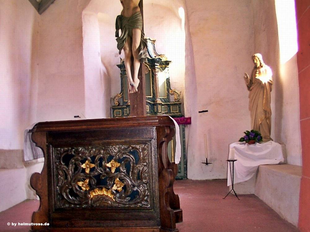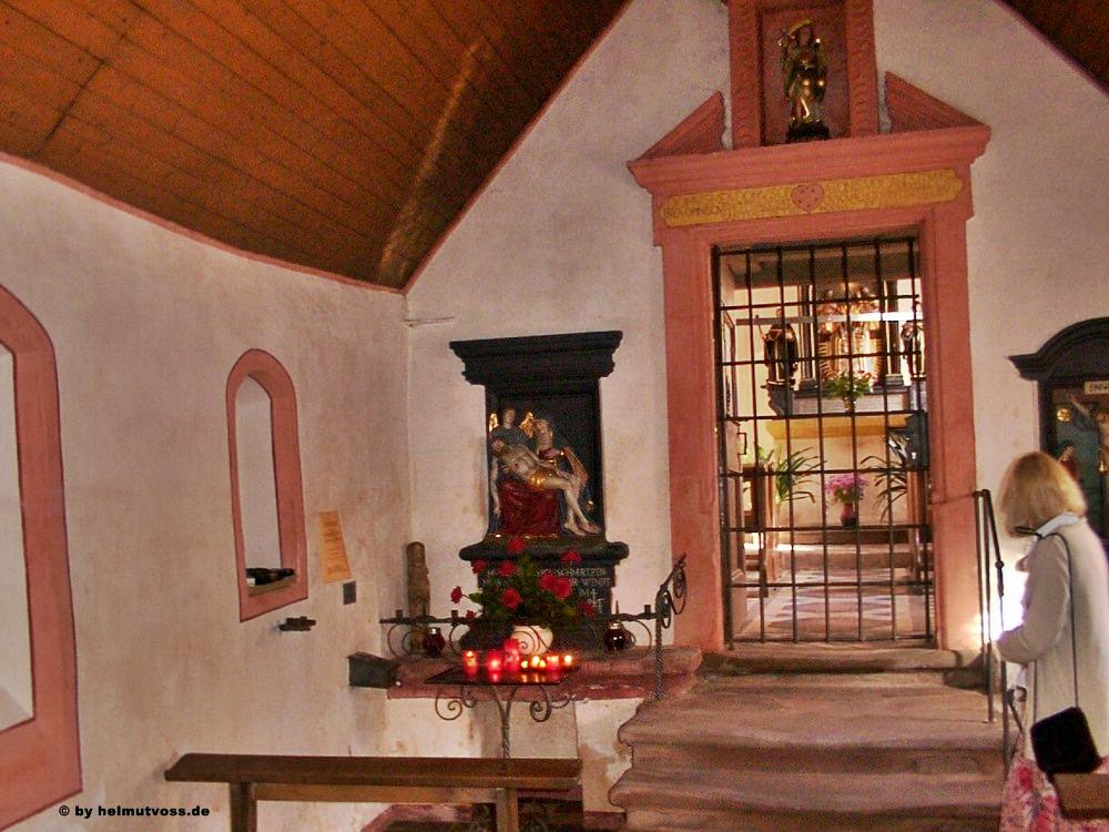 Sie beherbergt das berühmte Steinrelief von „Christus in der Kelter“, welches die fromme Bedeutung des Weines als „Blut des Herrn“ versinnbildlicht. |