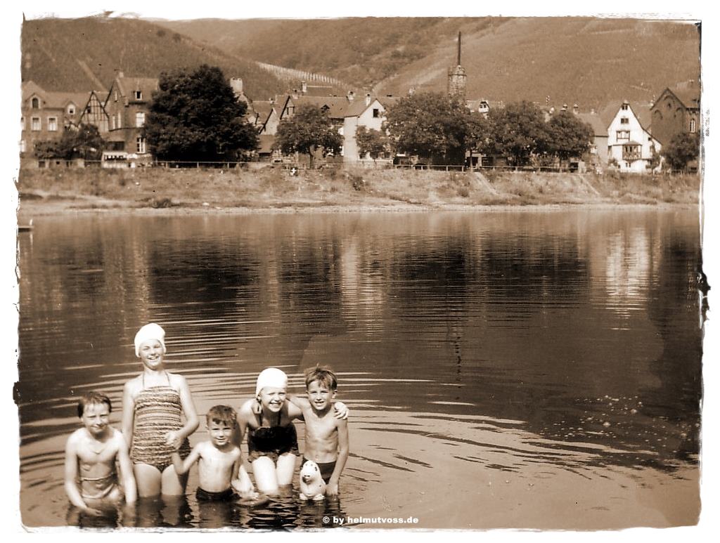 Mit Fähre zum gegenüberliegenden Moselufer, 1960 wir Kinder konnten immer mit rüber, auf der anderen Seite war das Wasser flach und hier konnten wir so richtig rumtoben. |